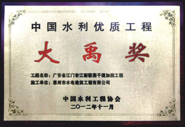 中國水利工程優(yōu)質(大禹)獎——廣東省江門市江新聯(lián)圍干堤加固工程