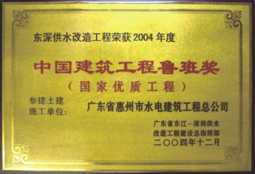 中國建設工程魯班獎(國家優(yōu)質工程)——東深供水改造工程