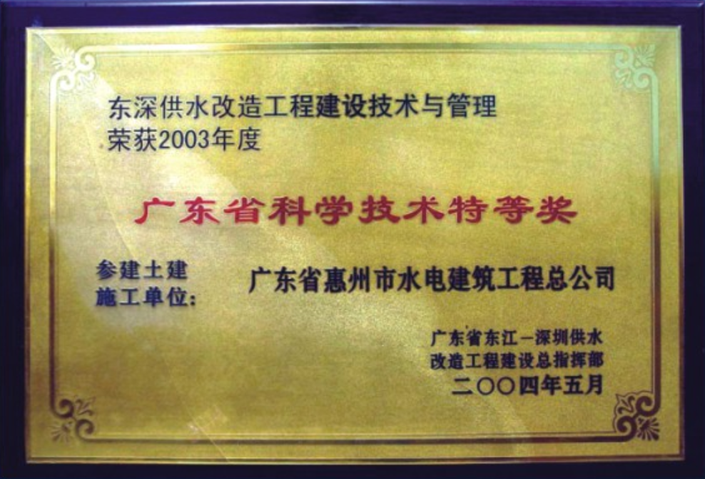 廣東省科學技術特等獎——東深供水改造工程建設技術與管理