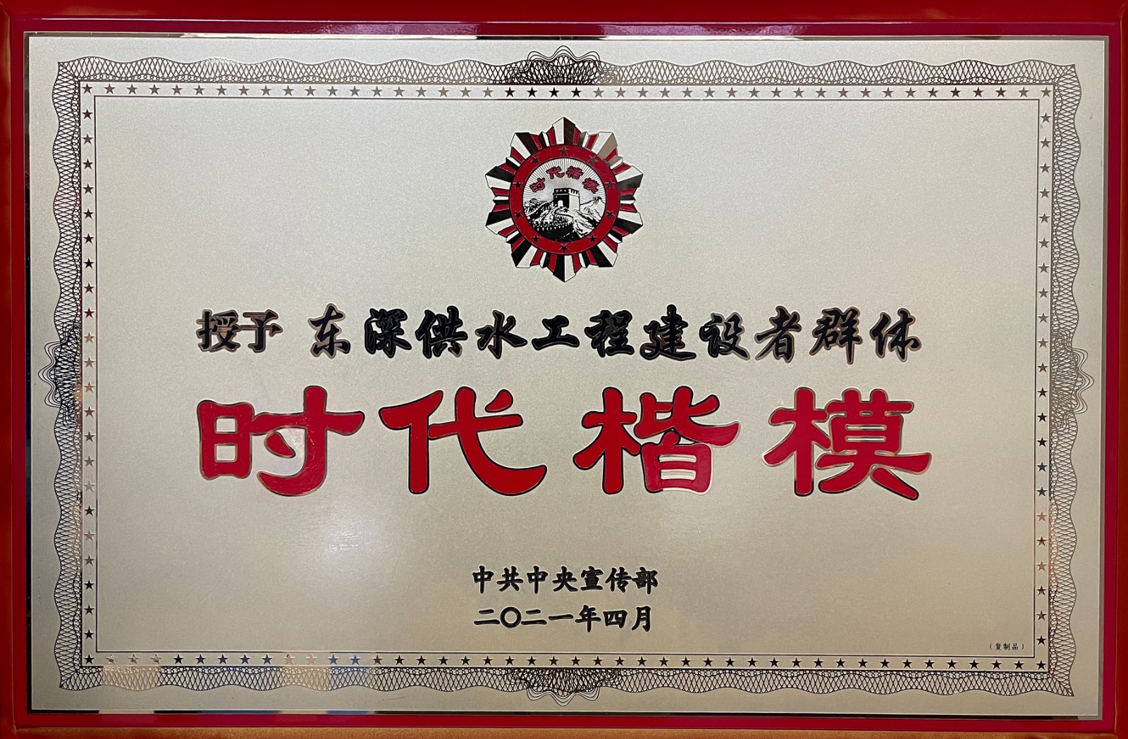“時代楷?!睒s譽稱號——東深供水工程建設者群體