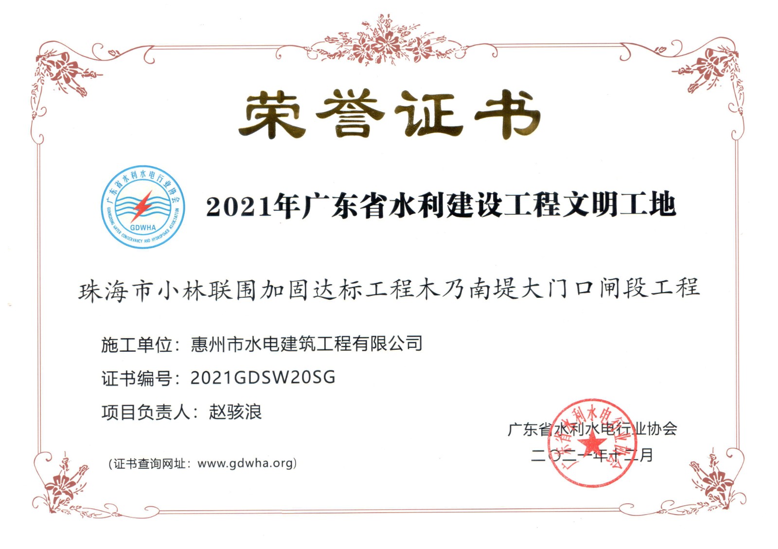 廣東省水利建設工程文明工地——珠海市小林聯(lián)圍加固達標工程木乃南堤大門口閘段工程