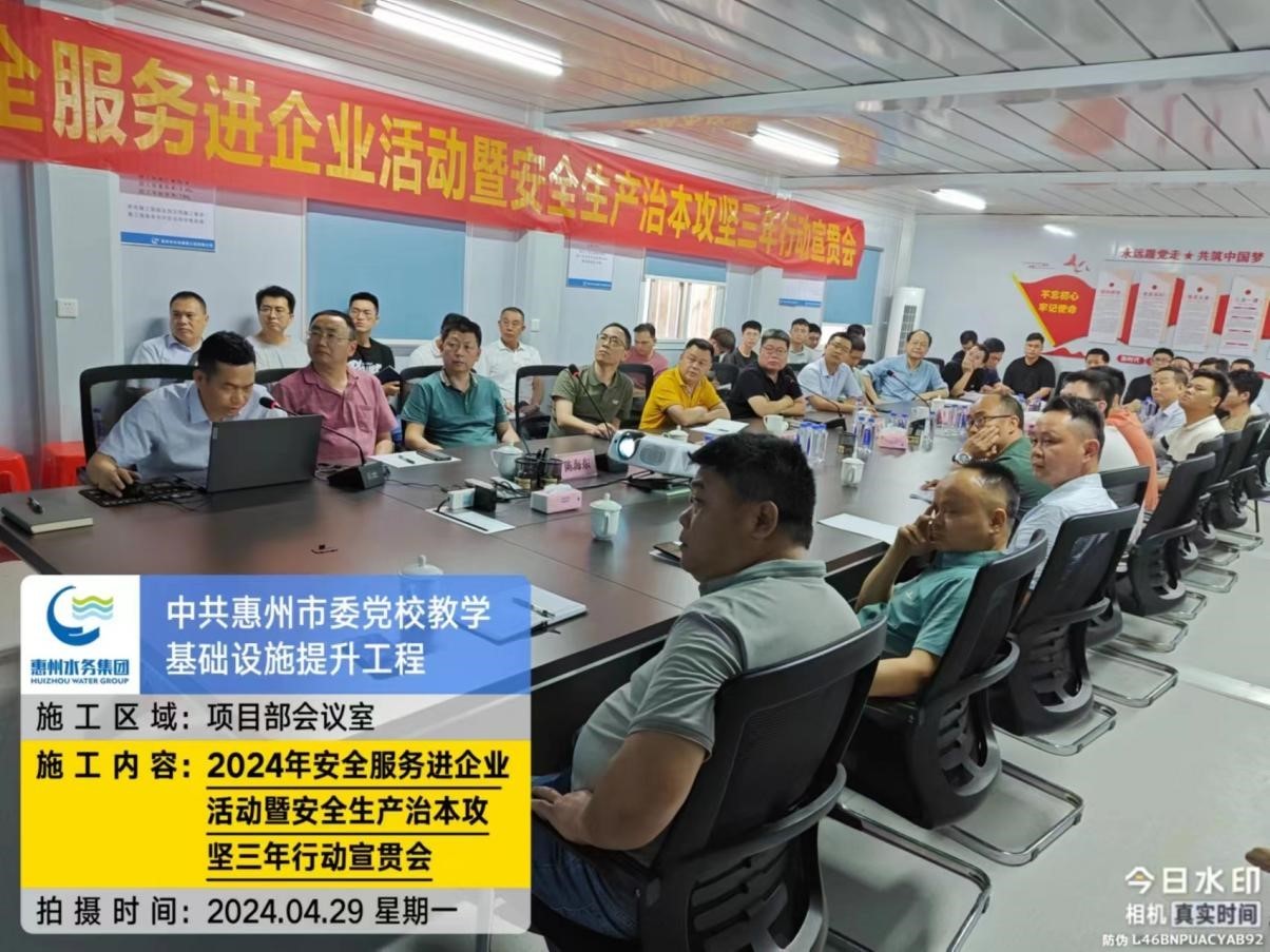 2024年4月29日下午,公司會同惠州市施工安全監(jiān)督總站,在中共惠州市委黨校教學(xué)基礎(chǔ)設(shè)施提升工程項目部舉辦了“安全服務(wù)進企業(yè)活動暨安全生產(chǎn)治本攻堅三年行動宣貫會”。......