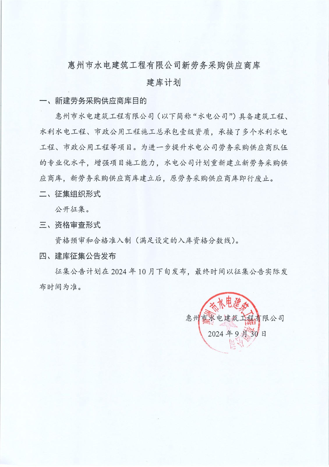 惠州市水電建筑工程有限公司勞務(wù)供應(yīng)商庫擴(kuò)庫評(píng)審結(jié)果公示......