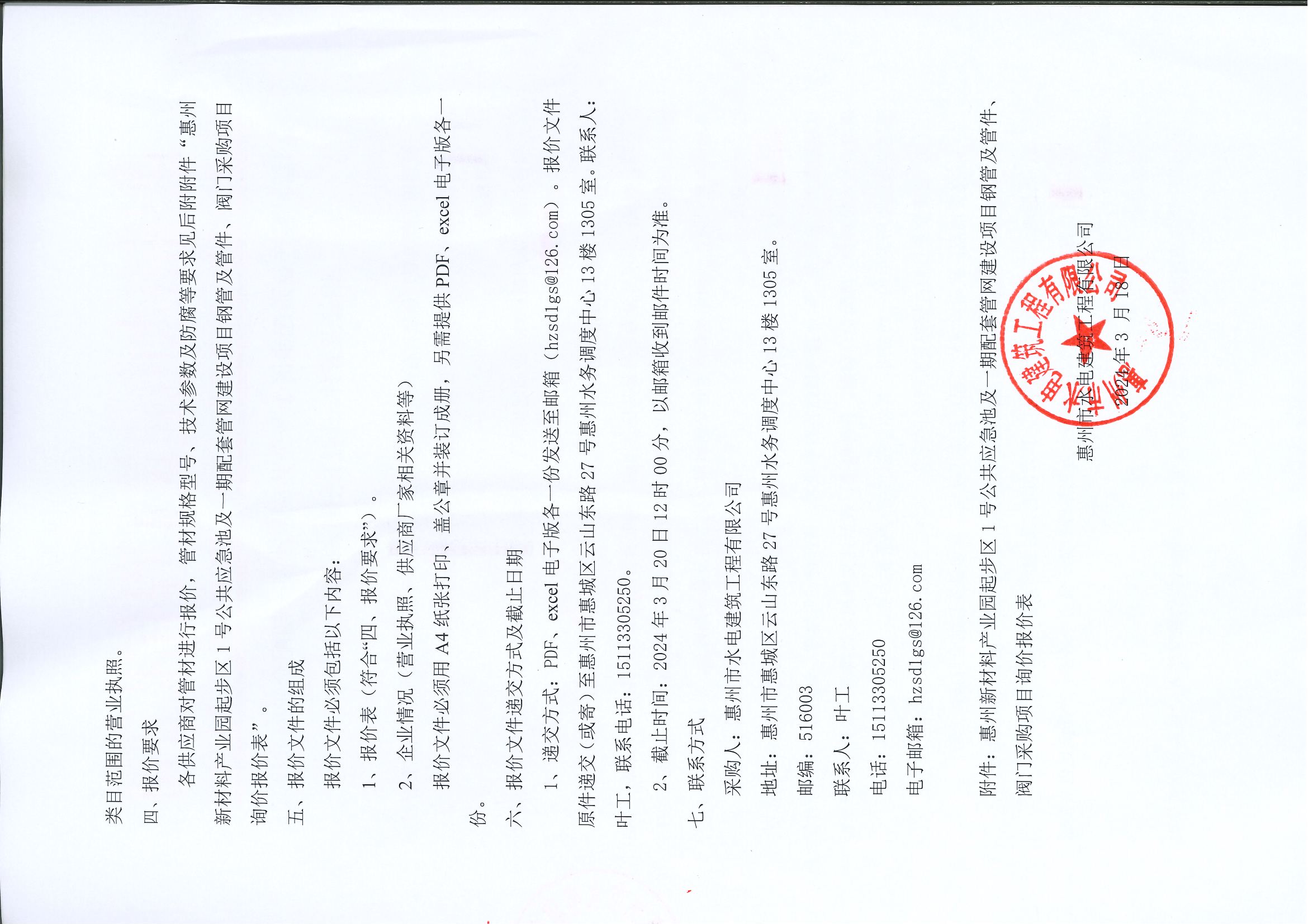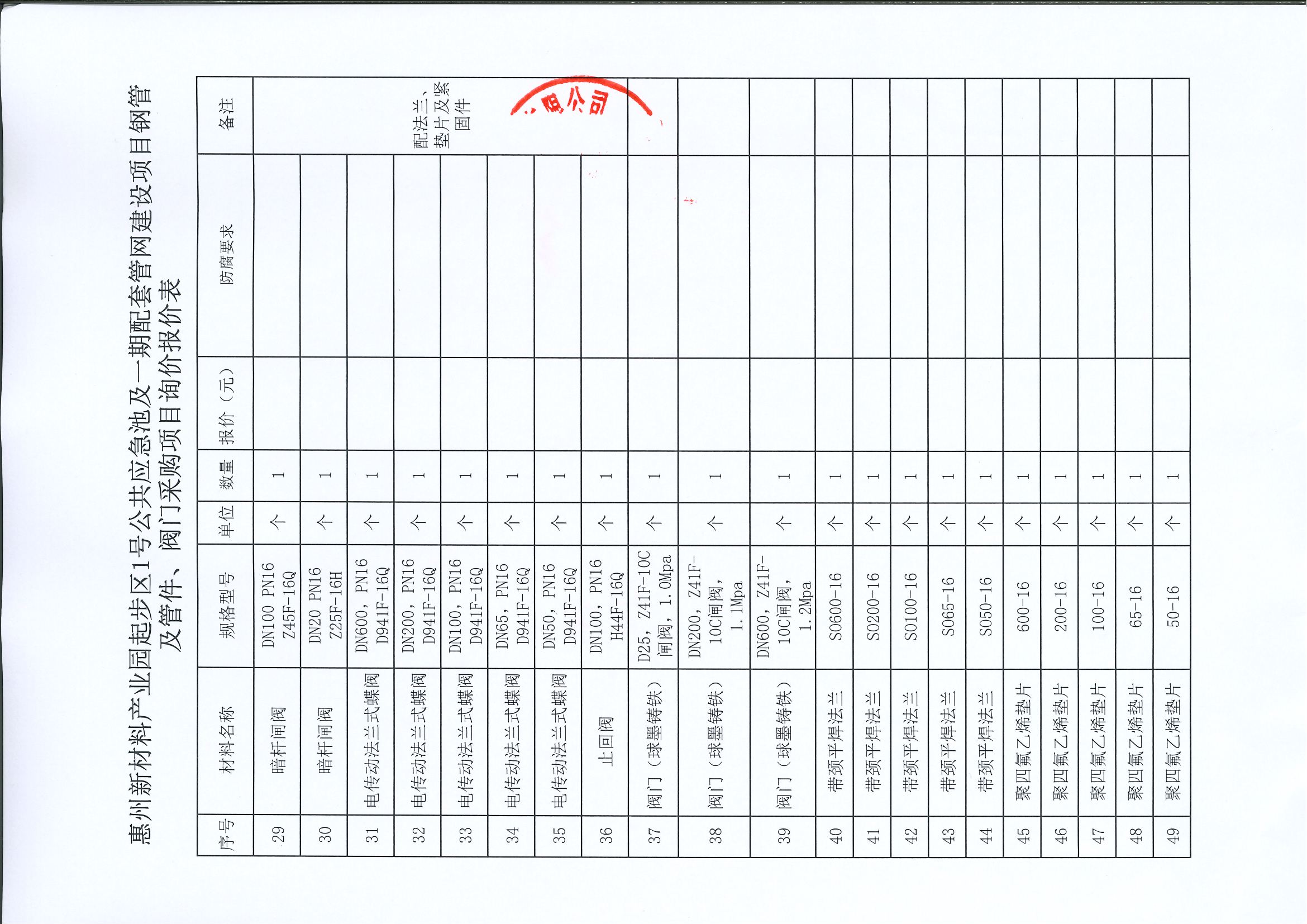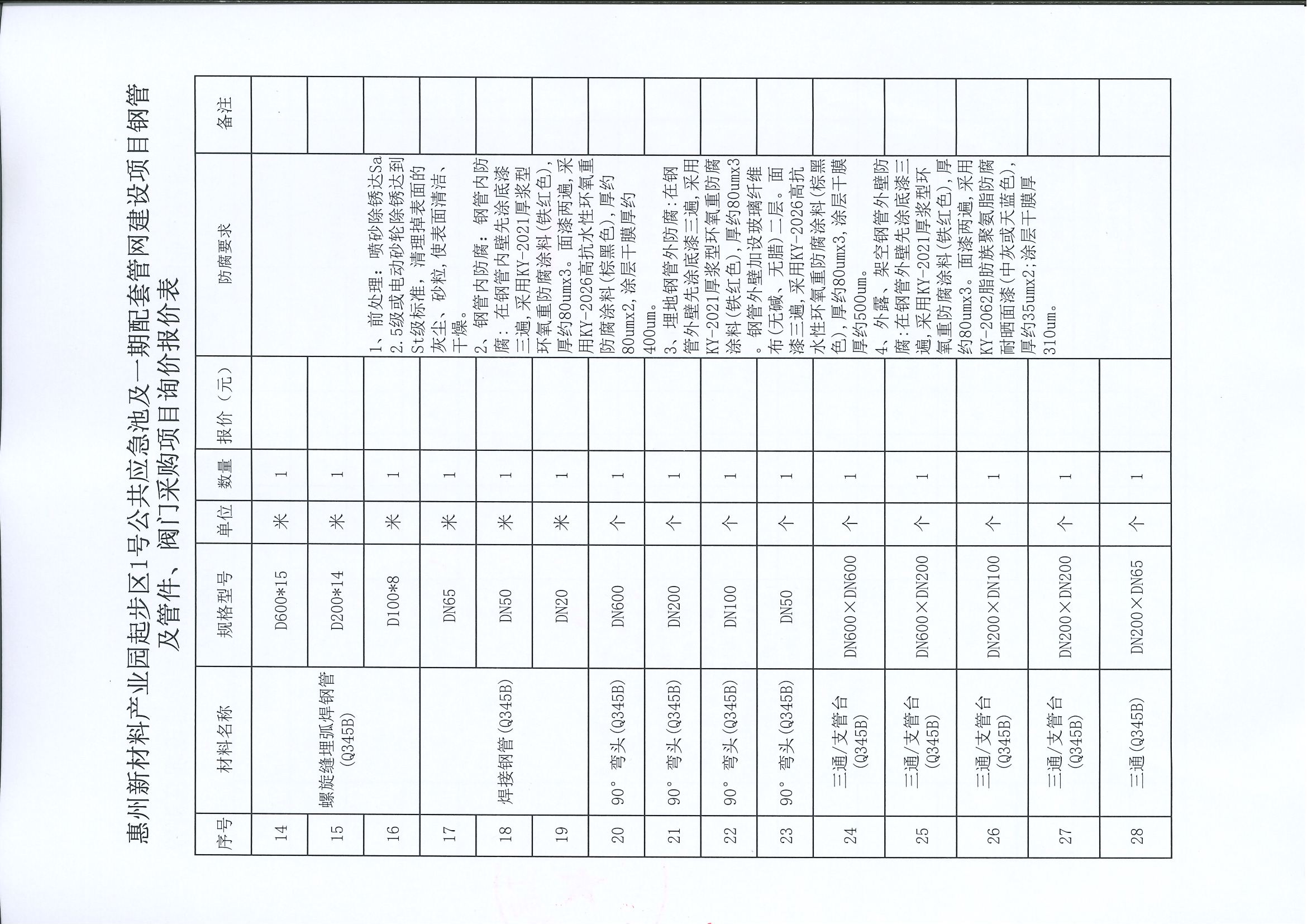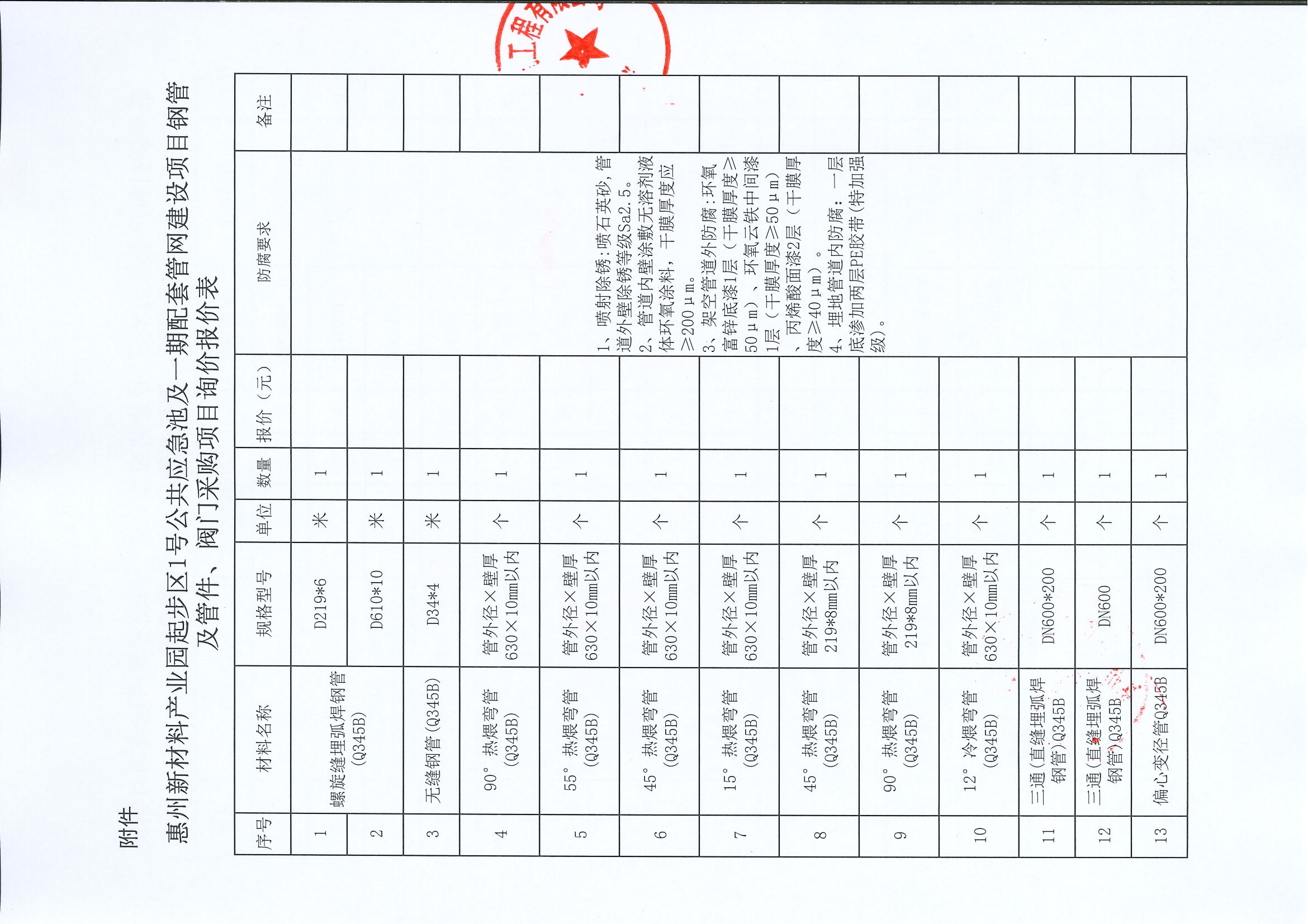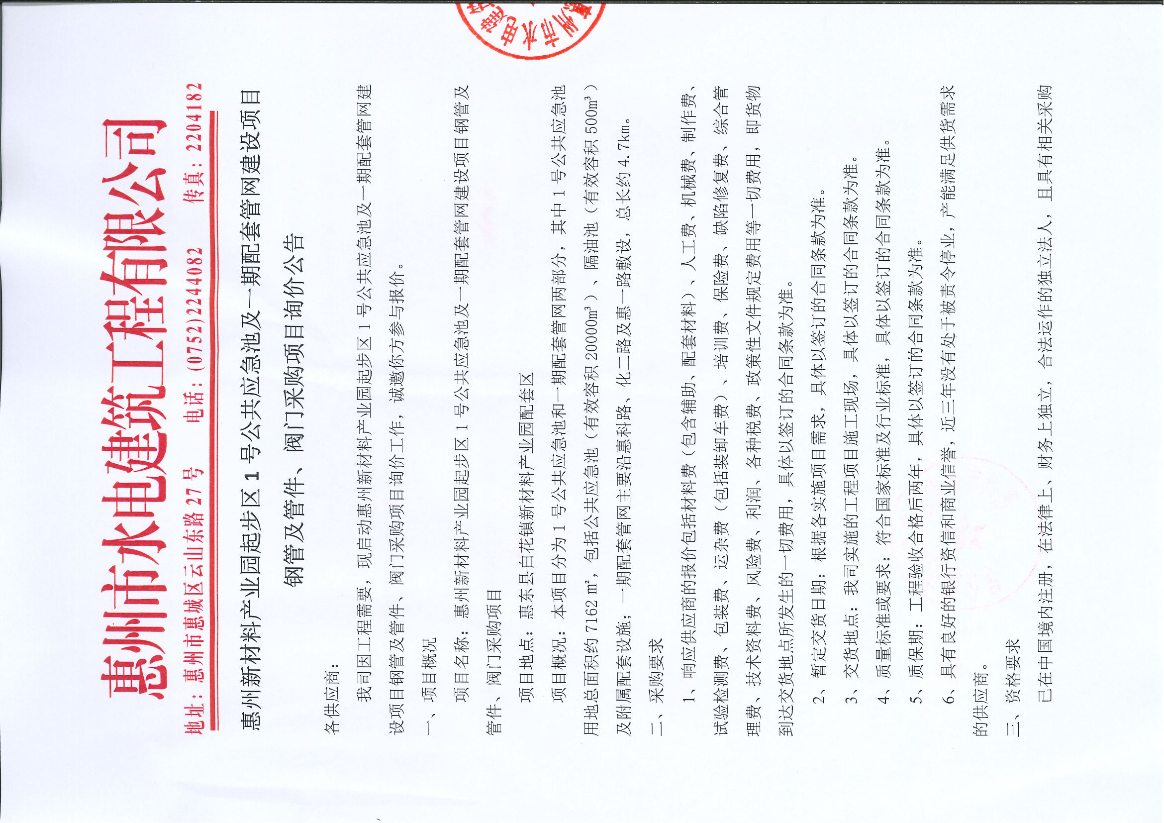 惠州新材料產(chǎn)業(yè)園起步區(qū)1號公共應急池及一期配套管網(wǎng)建設(shè)項目鋼管及管件、閥門采購項目詢價公告