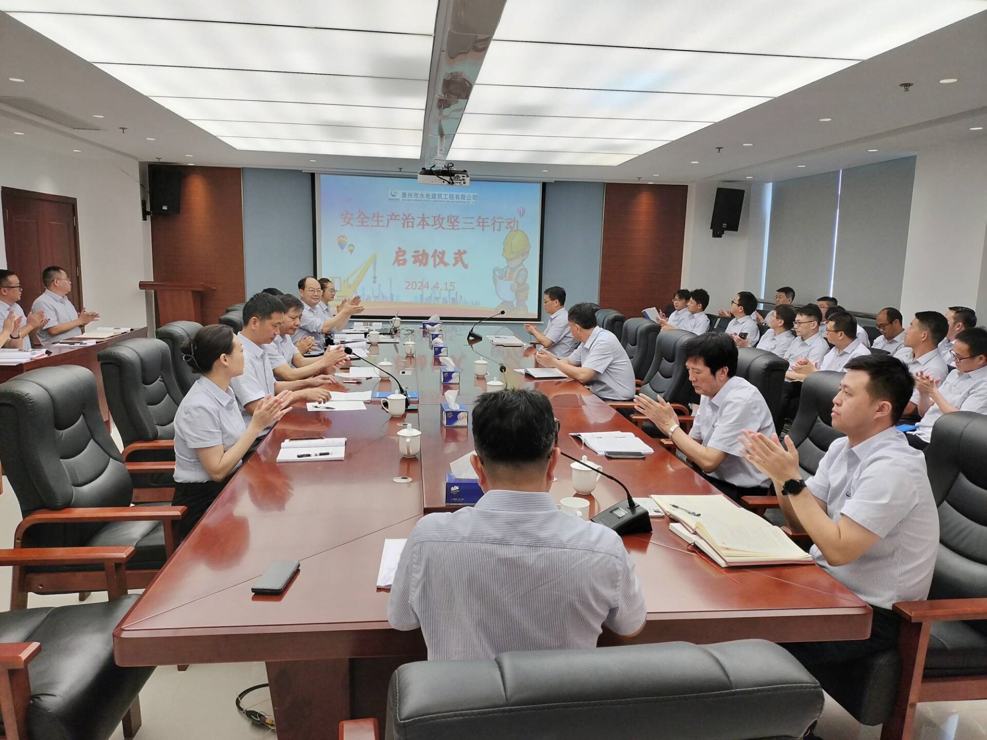 今年是國家安全生產(chǎn)治本攻堅三年行動的啟動之年,公司結(jié)合實際,及時印發(fā)了《安全生產(chǎn)治本攻堅三年行動實施方案(2024-2026年)》。會上,公司安委會主任、黨委書記、董事長鄭海強宣布惠州市水電建筑工程有限公司安全生產(chǎn)治本攻堅三年行動正式啟動。