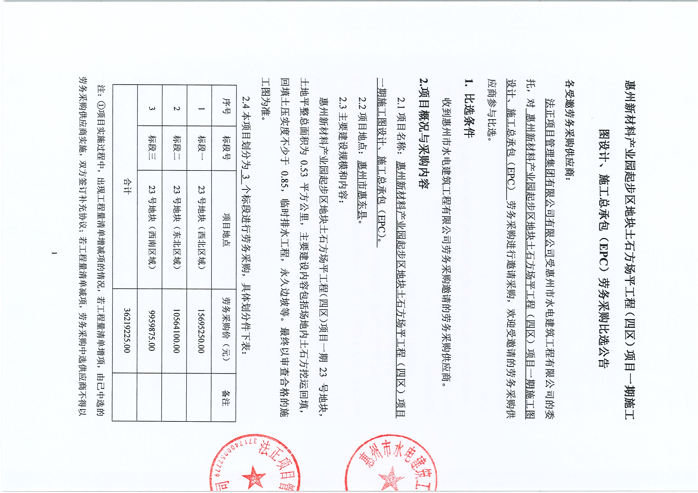 惠州新材料產(chǎn)業(yè)園起步區(qū)地塊土石方場(chǎng)平工程(四區(qū))項(xiàng)目一期施工圖設(shè)計(jì)、施工總承包(EPC)勞務(wù)采購(gòu)比選公告