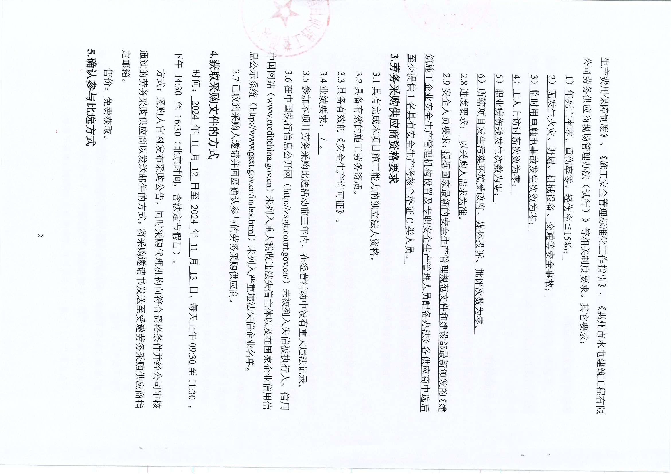 惠州市水電建筑工程有限公司勞務供應商庫擴庫公告