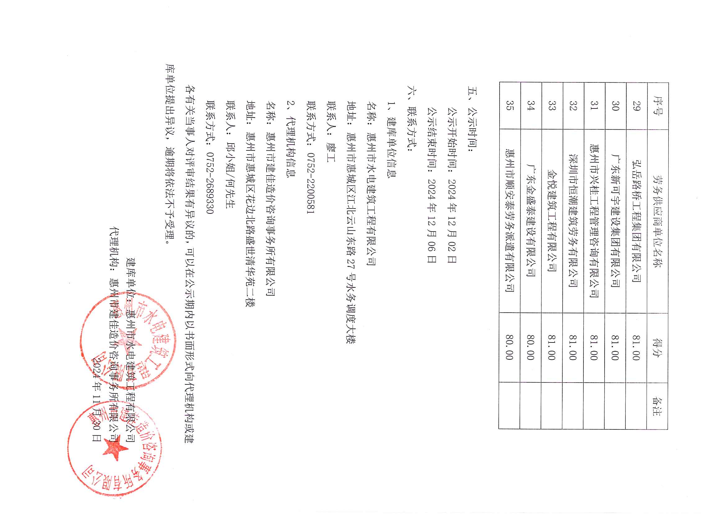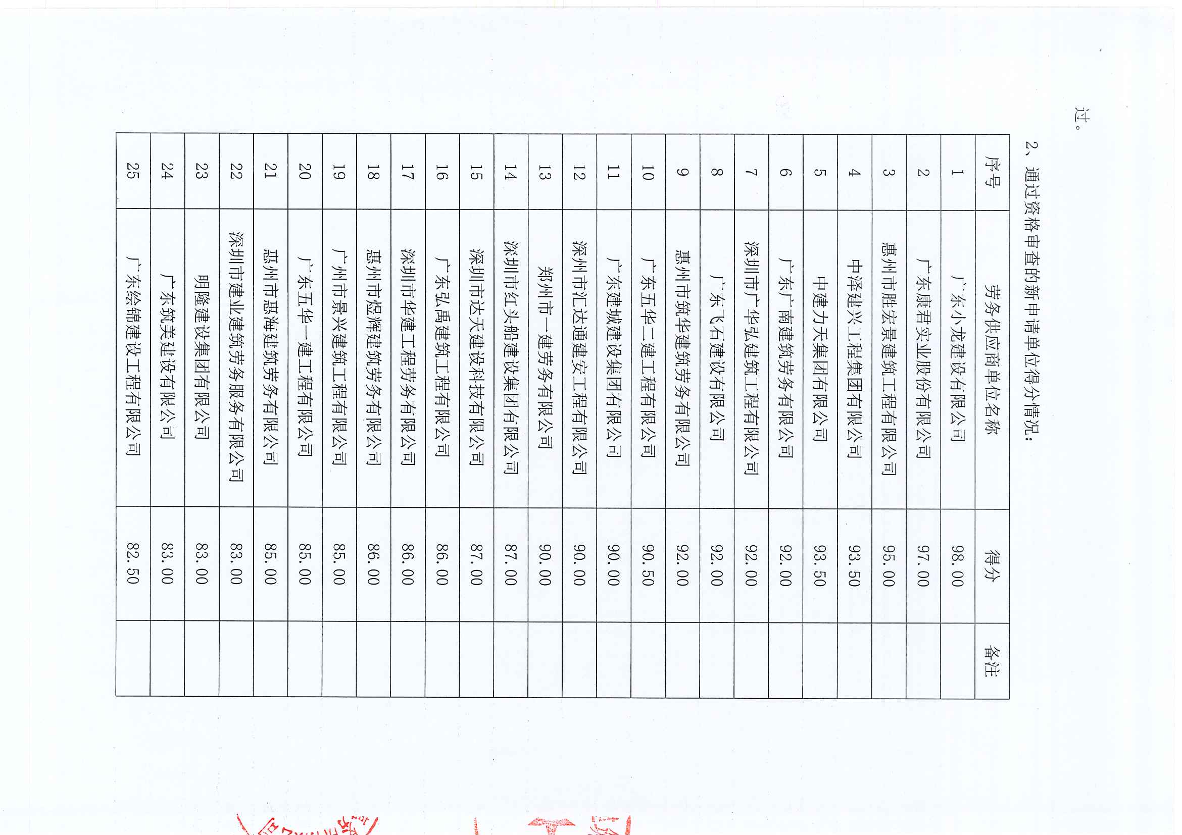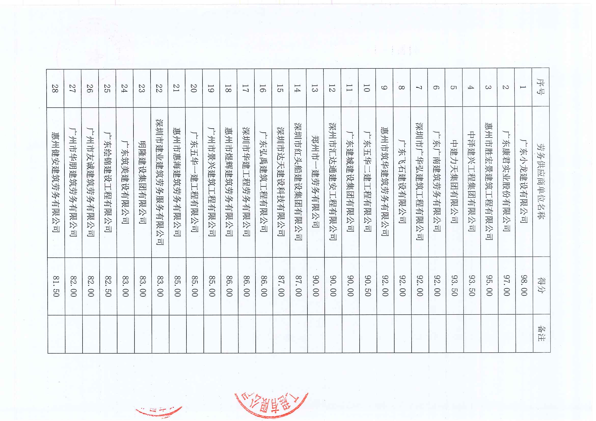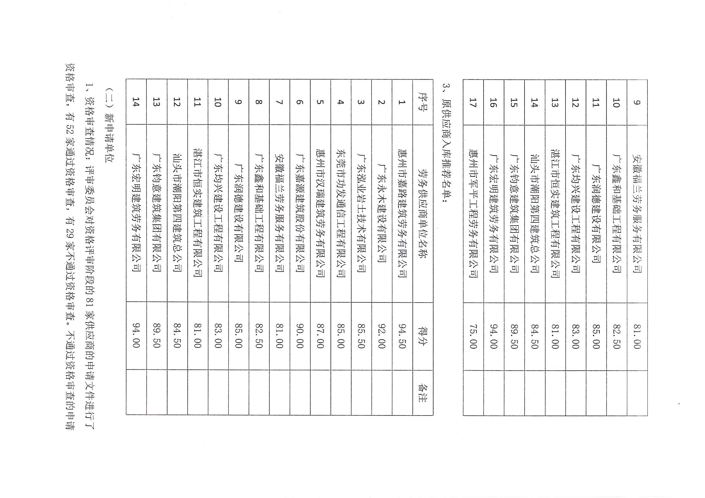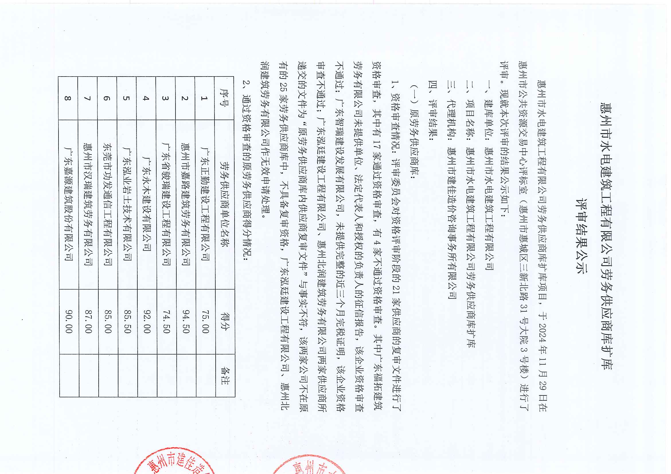 惠州市水電建筑工程有限公司勞務(wù)供應(yīng)商庫擴(kuò)庫評審結(jié)果公示