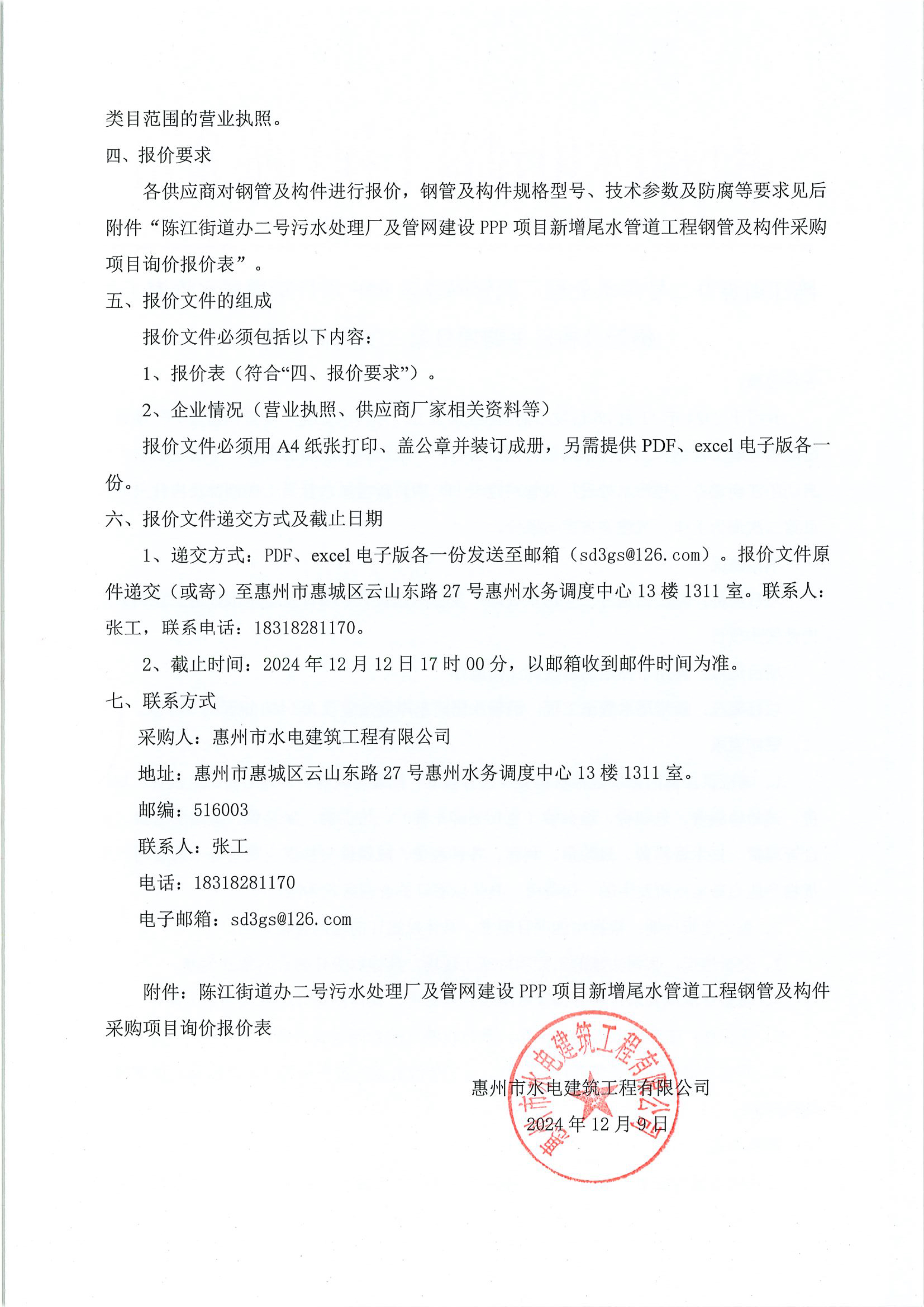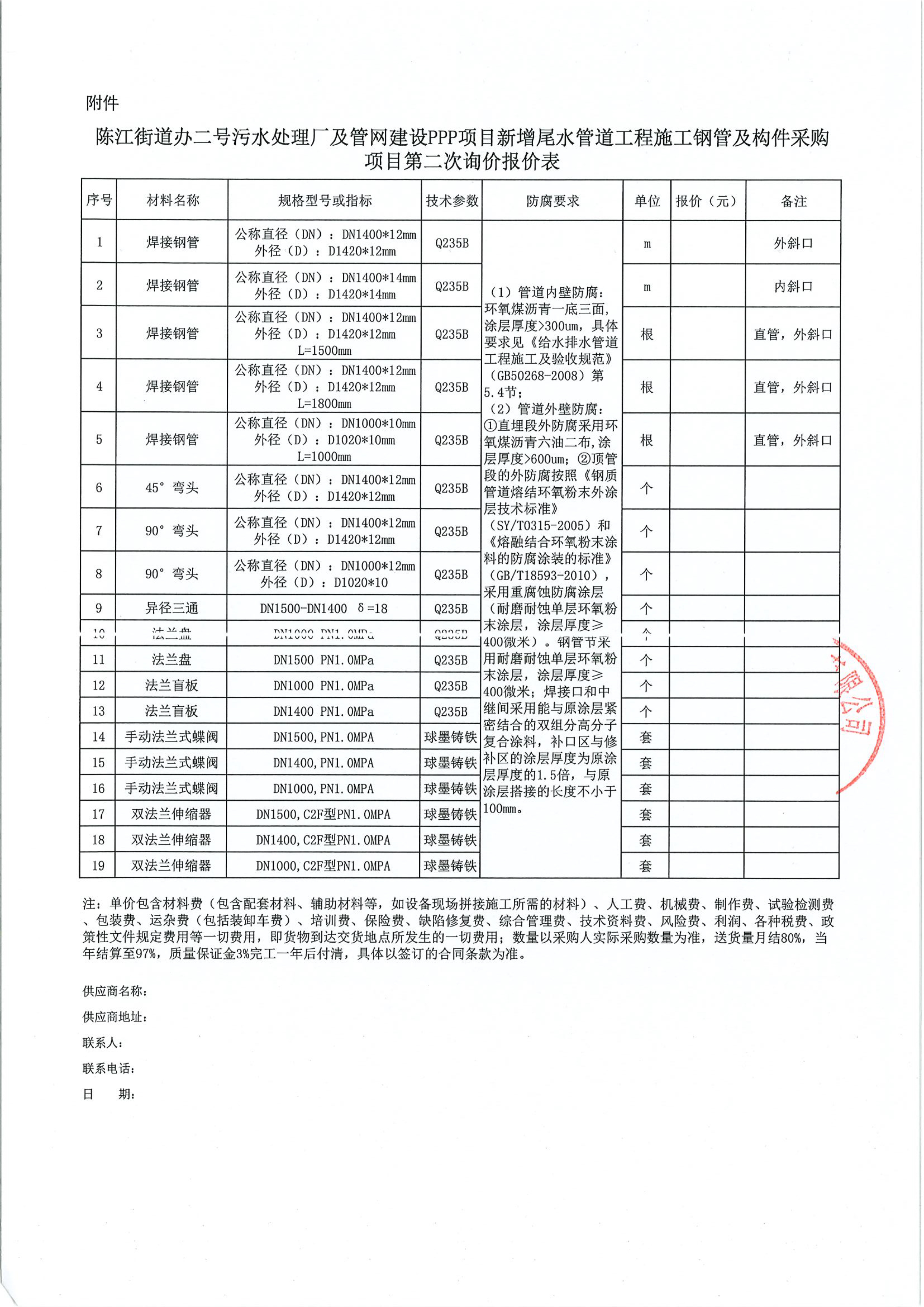陳江街道辦二號(hào)污水處理廠及管網(wǎng)建設(shè)PPP項(xiàng)目新增尾水管道工程鋼管及構(gòu)件采購項(xiàng)目第二次詢價(jià)公告附件: