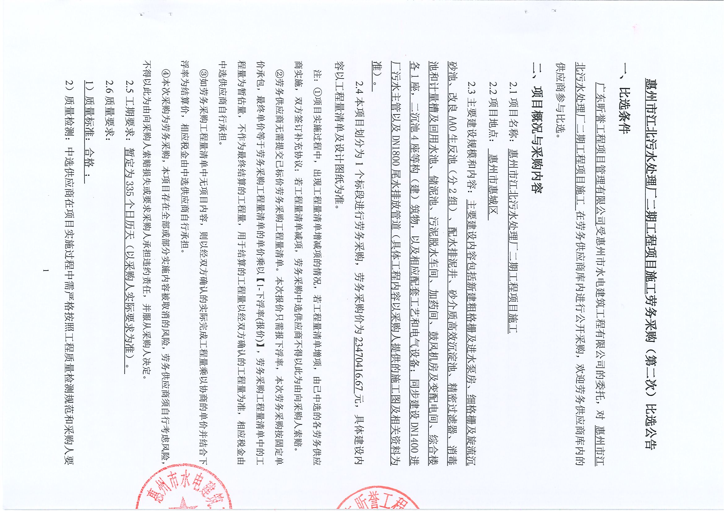 惠州市江北污水處理廠二期工程項(xiàng)目施工勞務(wù)采購(gòu)(第二次)比選公告
