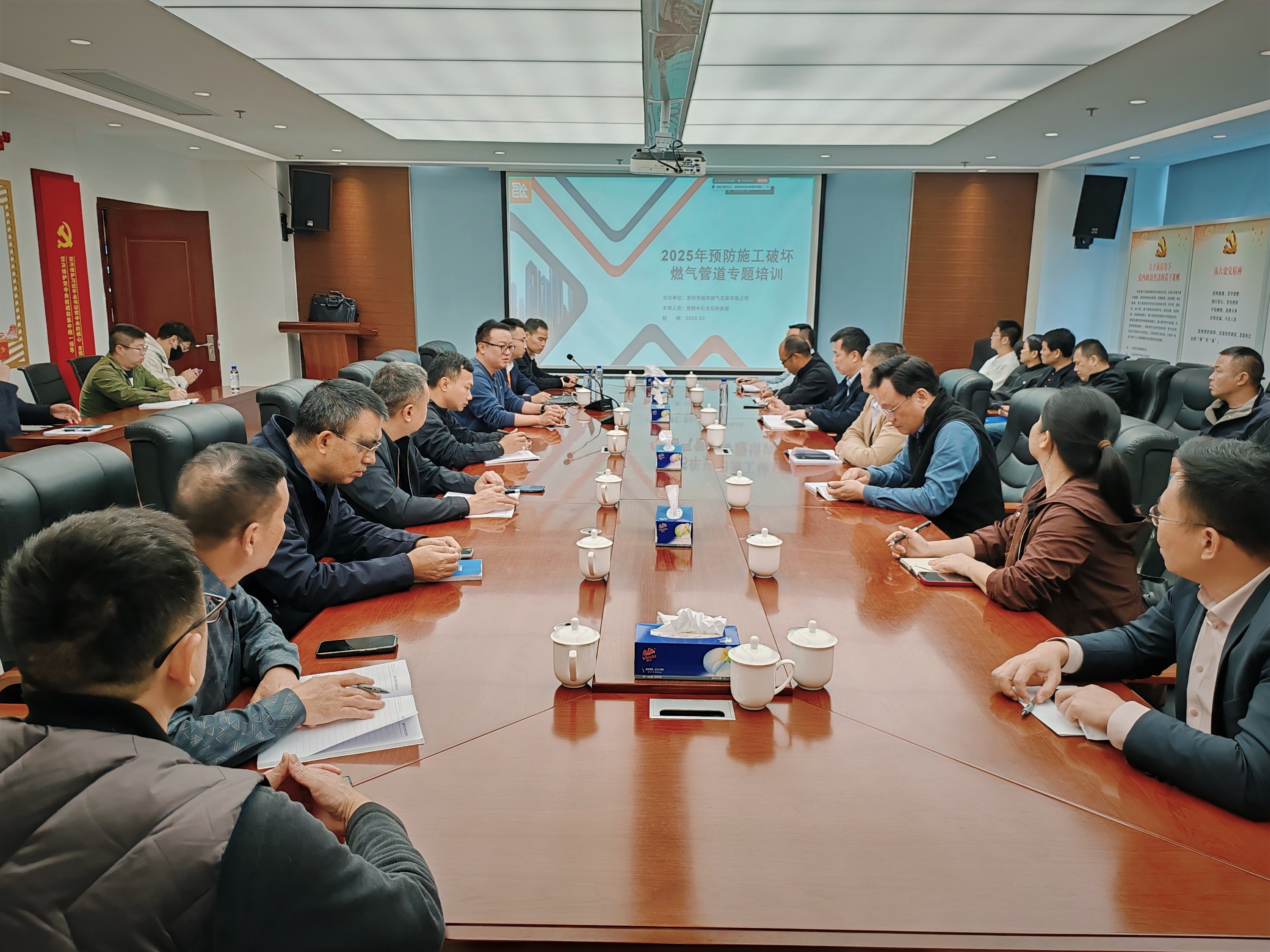 為提高施工過程中保護地下管線、燃氣管道的安全意識和應(yīng)急處置能力,從源頭防范第三方施工破壞燃氣管道事故發(fā)生。2月20日上午,公司安全管理部和施工八隊聯(lián)合舉辦了《預(yù)防施工破壞燃氣管道》的專項安全培訓(xùn)。培訓(xùn)邀請了惠州市城市燃氣發(fā)展有限公司客服中心王瑞清經(jīng)理及管網(wǎng)中心林家進主任授課,公司總經(jīng)理助理史洪亮、安管部經(jīng)理王東海、施工分隊和下屬企業(yè)分管安全副經(jīng)理、各分隊質(zhì)安小組成員、勞務(wù)班組現(xiàn)場負責人及安管部全員參加培訓(xùn)。培訓(xùn)在各項目設(shè)立分會場,由項目負責人組織項目部管理人員與勞務(wù)隊管理人員參加。