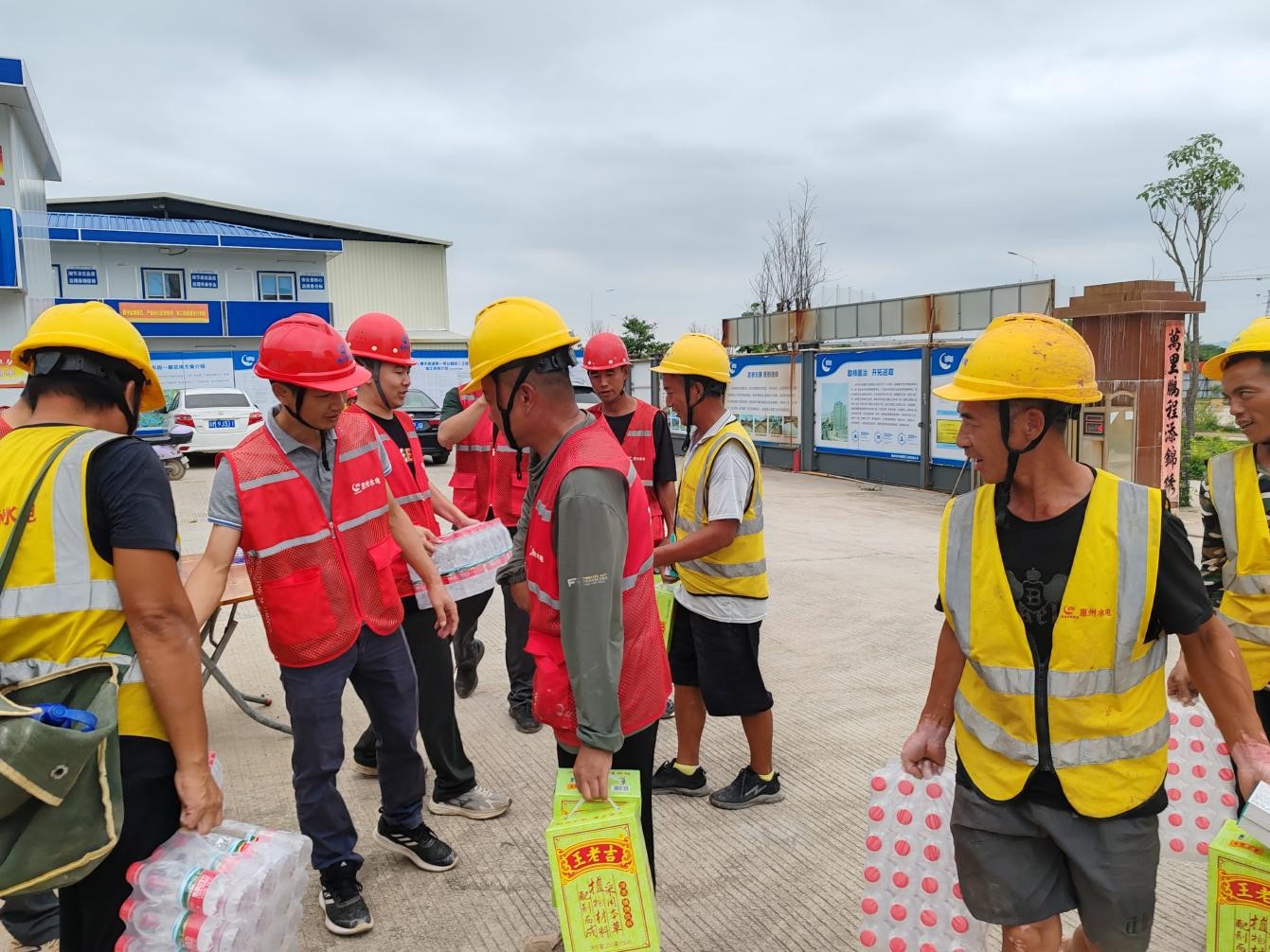 活動(dòng)現(xiàn)場(chǎng),臨時(shí)黨支部成員與項(xiàng)目部工作人員化身“清涼使者”,將藿香正氣水、王老吉涼茶、礦泉水等防暑降溫物資一一遞到工人手中。“天氣炎熱,一定要注意防暑,合理安排作業(yè)時(shí)間!”他們一邊發(fā)放物資,一邊反復(fù)叮囑工人們做好自我防護(hù),科學(xué)調(diào)整作息,確保安全生產(chǎn)。接過(guò)物資的工人們臉上洋溢著笑容,紛紛對(duì)這份及時(shí)的關(guān)懷表示感謝。