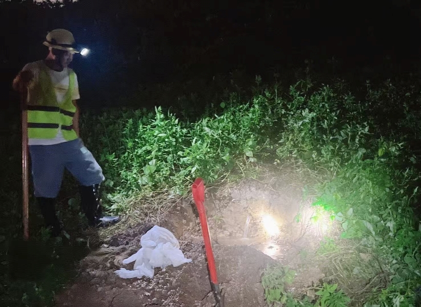 高效協(xié)同,凝聚搶險合力。公司調(diào)度60多名搶險隊員和技術(shù)人員,皮卡車、指揮車輛及后勤保障車共9輛抵達(dá)現(xiàn)場并開展安全技術(shù)交底,立即做好工作分工與應(yīng)急處置措施。在現(xiàn)場,因連日暴雨河水高漲,背水坡面因滲流作用出現(xiàn)多處涌水現(xiàn)象,如不及時處置,將引發(fā)滲透破壞,堤壩有坍塌風(fēng)險。2054分,搶險戰(zhàn)役正式打響,整個搶險過程持續(xù)2小時,到晚上11點成功處置管涌點12處,圓滿完成全部搶險任務(wù)。