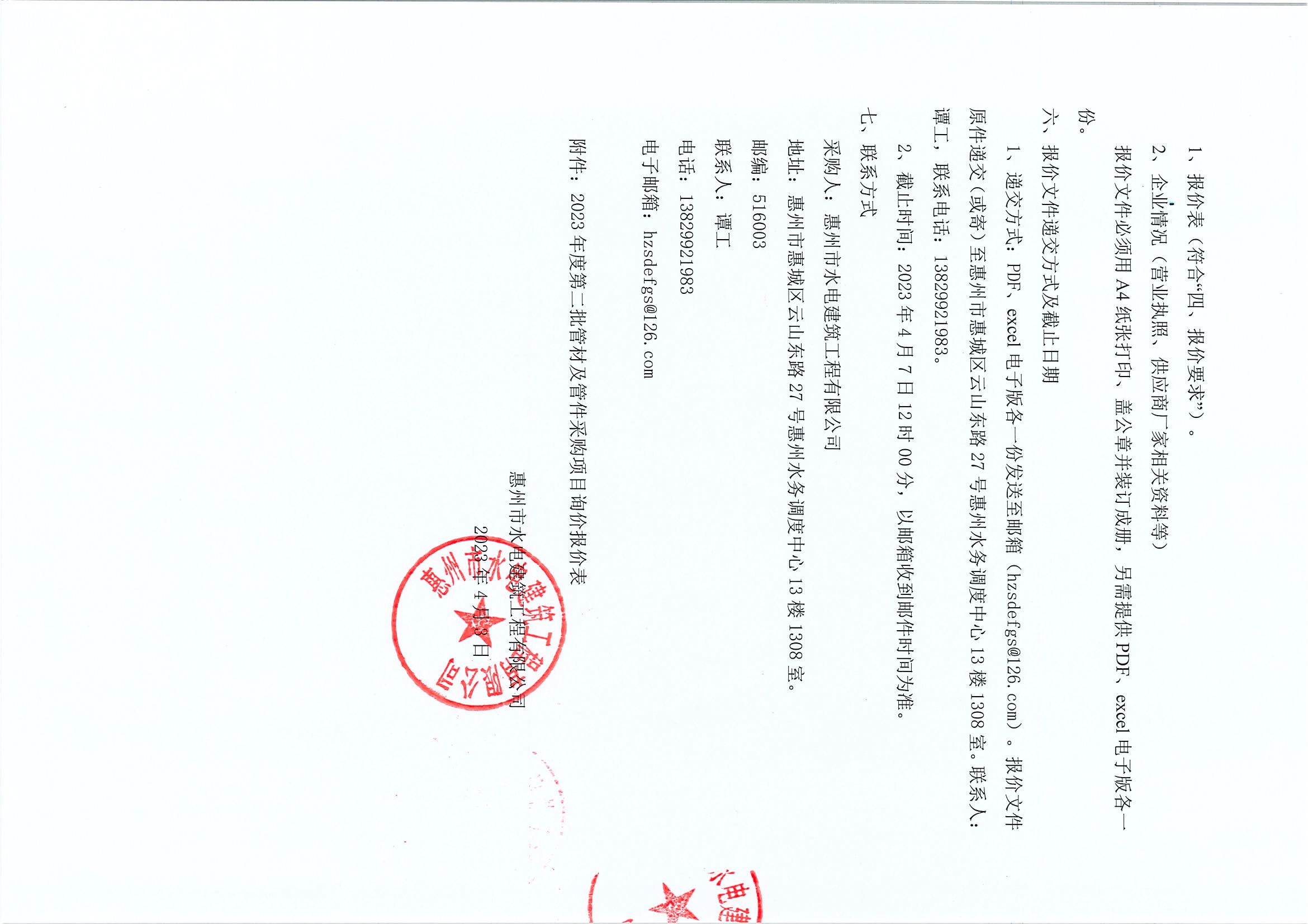 2023年度第二批管材及管件采購(gòu)項(xiàng)目詢(xún)價(jià)公告
