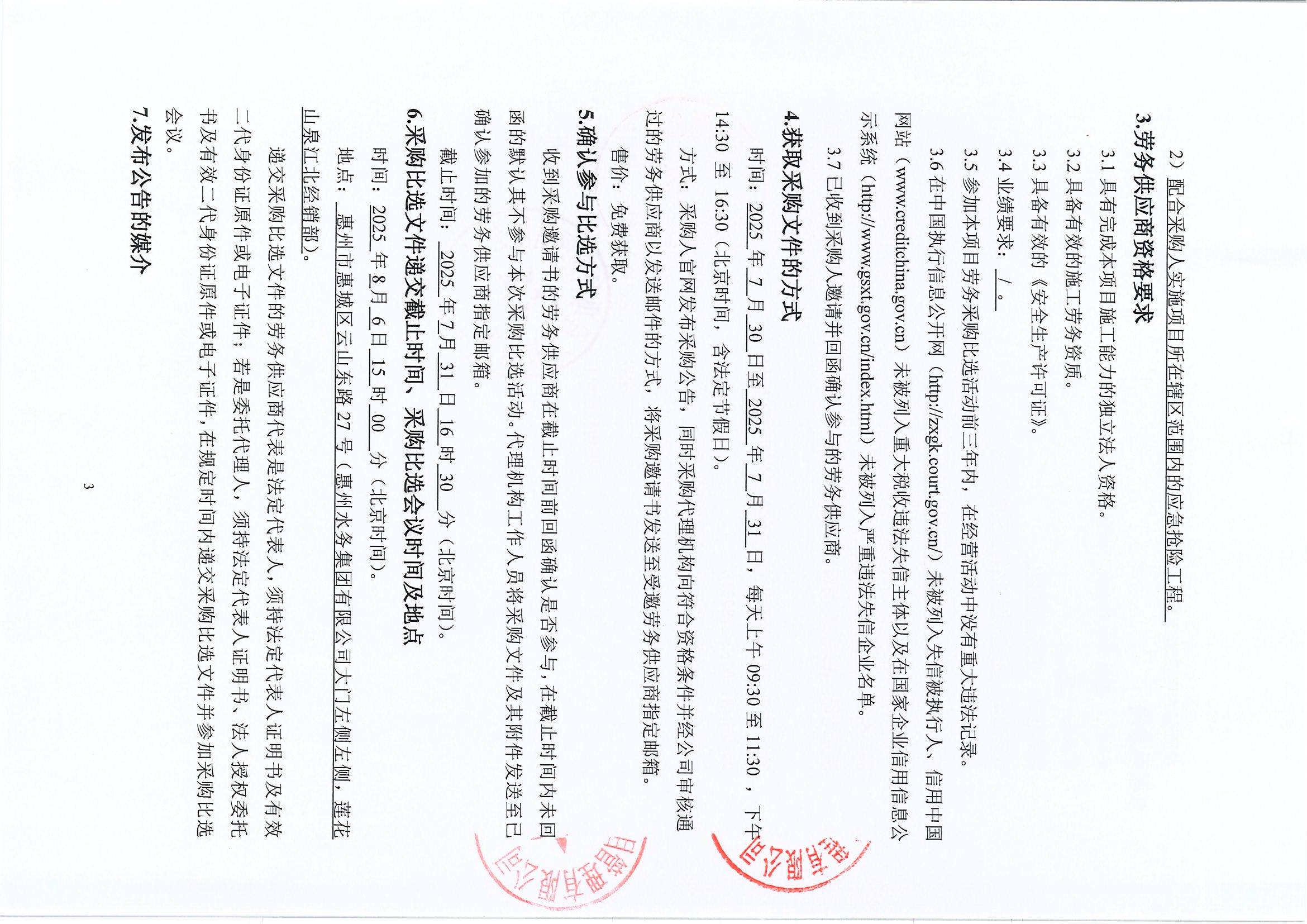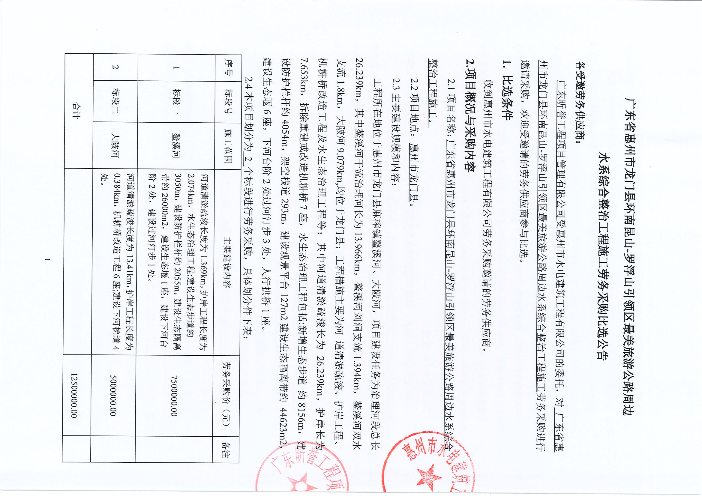 博羅縣河肚水水系綜合整治工程和博羅縣瀾石河水系綜合整治工程勞務采購比選公告