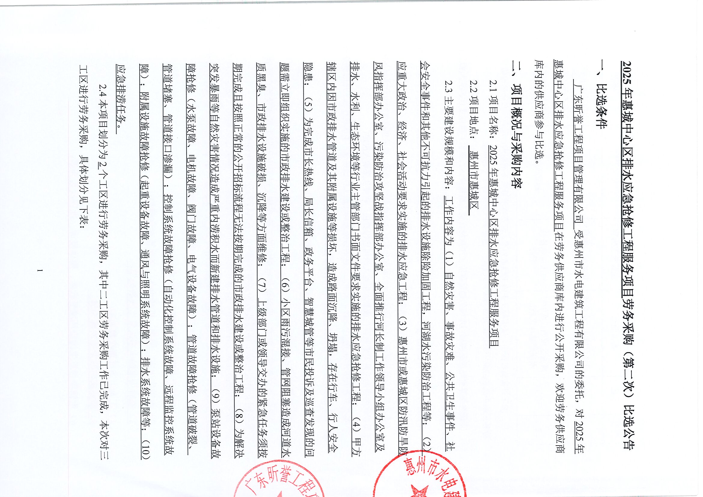 2025年惠城中心區(qū)排水應(yīng)急搶修工程服務(wù)項(xiàng)目勞務(wù)采購(gòu)(第二次)比選公告