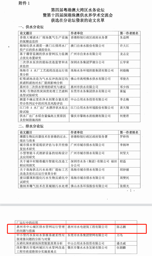由我司技術中心陳志鵬所撰寫的論文《惠州市中心城區(qū)排水管網試運行管理的問題與措施》獲選在第四屆粵港澳大灣區(qū)水務論壇暨第十四屆深港珠澳供水屆學術交流會技術分論壇發(fā)表。
